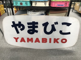 「特急 やまびこ」 東北本線上野〜盛岡間ボンネット電車特急やまびこ 485系食堂車付で使用、昭和40〜50年代頃 1982年には200系 新幹線に置換となる アクリル板前後2枚張り重ね サイズ:49.5×103.5cm 厚1cm(0.8+0.2cm) ボンネット特有の内側への湾曲仕様 縁に沿ってゴムパッキン取付、清掃、フレーム 取付時のサイド調整痕、表面擦有 状態使用痕共に極上 (神田駅前店) |
