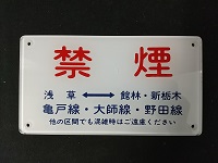 「禁 煙 浅草⇔館林・新栃木」 亀戸線・大師線・野田線 東武鉄道 アクリル板製 サイズ/12x22x厚さ0.4cm 状態優 |