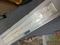「時刻表灯」 59年6月 白光電器工業K.K. 未配線 現状点灯せず サイズ/21x49cm 奥行5cm 蛍光灯有 状態優 |