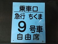 「急行ちくま乗車口案内 9号車 自由席 サイズ/30㎝×25㎝ 使用による汚れ有 |