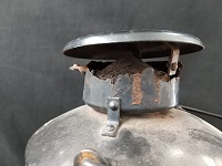 「信号燈」 東京・神田 渡邊燈器株式会社 昭和55年5月製造 上部損傷有 錆、汚れ有 鉄製 サイズ/22×22×32cm 状態良 |