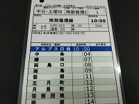 「アルピコ交通 松本営業所」 平日・土曜日 平成24年10月1日改正 南部循環線2 松本車庫‐アルプス口‐ なんなんひろ‐アルプス口‐ 松本車庫‐アルプス口‐ なんなんひろ‐アルプス口‐ 松本車庫 ラミネート加工 行路揃い 片面印刷 2枚 状態優 |