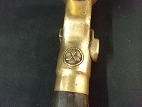 「ブレーキハンドル」 客気の彫文字 三菱 真鍮製、先端部木製 長さ/22.5cm 状態優 |