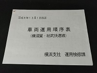 「横須賀・総武快速線」 平成8年12月1日改正 横浜支社 運用研修課 大船/幕張区所 平日/休日 基本/付属 113系/E127系 ホチキス留め 表紙外れ A4版 片面印刷13枚 状態優 |