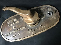 「路面電車マスコンハンドル +マスコン天板」 真鍮製 三菱電機製 製造番号No.3293 ハンドル直径11cm 長さ/25cm 天板/20x44x厚さ2cm 状態優 |