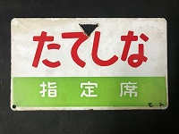 「アルプス指定席/ たてしな指定席」 モト ホーロー板 黄緑帯 使用痕多数有 状態優 |