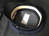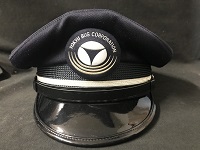 「東急バス旧冬制帽」 TOKYU BUS CORPORATION 紺色/シルバー線1本入 サイズ/3号 頭囲/58cm 帽章/文字デザイン刺繍 未使用品 |
