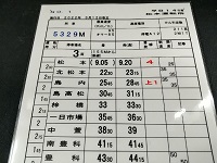 「松本運転所」 平B14行路 5329M 松本-南小谷 2022年3月12日施行 211系 片面印刷 ラミネート 状態優 |