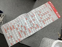 「操作パネル表示板」 鉄製 サイズ/5x57cm 上部1cm曲り有 アルミ板に文字記載 左から 戸閉切放/制御DC/ パンタグラフ/戸閉/直流 電灯回路/床下点検灯/ 放送機電源非常通報器/ 需給電指令電源/予備/ 冷暖房制御AC/制御AC/ ブレーキAC/交流電灯回路/ 弁ヒータ/コンセントWiFi/ 案内表示器/ラジオ・放送/ 扇風機/行先表示器 状態優 |