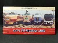 「あずさ50周年記念入場券」 JR東日本 新宿駅普通入場券181系 新宿駅普通入場券183系 新宿駅普通入場券189系 新宿駅普通入場券E351系 新宿駅普通入場券E257系 全て硬券 サイズ/15.0×28.0㎝ 見開きサイズ/30.0×28.0㎝ 状態優 |