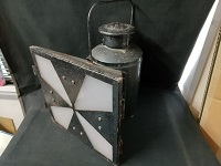 「車止め」 渡邊燈器株式会社 昭和55年2月製造 金属製 上部に持ち手有 ソケット付交換推奨 コード無し サイズ/28×30×30cm 状態良 |