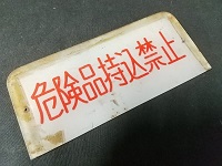 「危険品持込禁止」 裏彫文字 サイズ/8.2×18.6×0.3cm アクリル製 使用による汚れ有 状態優 |