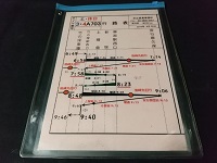 | 「京浜急行行路表」 金沢文庫電車区 休日用、222仕様、H5-7-25 列車番号2158H/455H/554H/555H/ 1656H/1957H/1828/2029/2133 神奈川新町-三浦海岸 堀ノ内-三崎口 文庫-三崎口(三浦海岸泊) 三崎口-文庫 文庫-浦賀₋文庫-神奈川新町 サイズ/16.7×25.6㎝ 樹脂ケース入 状態優 |
