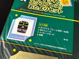 「トワイライトエクスプレス] ・フレーム切手82円 ・封緘シール ・メッセージカード ・封筒 各1枚 状態 未開封 |