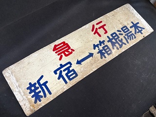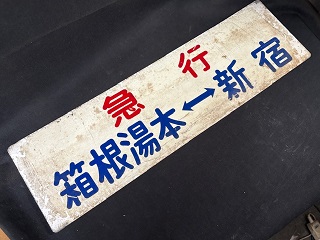 | 「急行 箱根湯本⇔新宿/ 急行 新宿⇔箱根湯本」 サイズ/14.7×51㎝ アルミ製/塗版 小田急 状態 優 使用による傷・汚・剥有 |