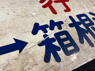 「岩見澤行〇岩/幌内行〇岩」 ホーロー紺厚板 白彫文字 サイズ/18.0×60.0㎝ 状態優 |