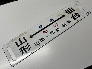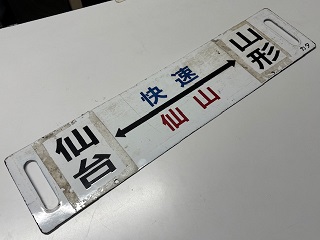 「快速仙山 仙台⇔山形 作並~山形 各停/ 快速仙山 山形⇔仙台」 ホーロー板 浮き文字 カタ テープ痕有 状態優 |