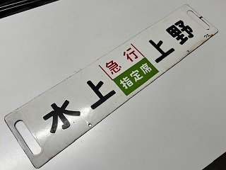 「急行指定席 水上⇔上野/ 水上⇔新前橋 ウエ」 ホーロー/彫文字 14×64cm 状態 優 |