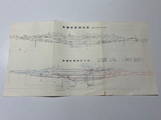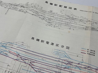 「黒磯駅 作業ダイヤ 配線図・電源区分図」 25.6×48.4cm 3つ折り 状態 良 シミ・若干破れ有 |