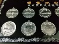 | 「東京西鉄道管理局 提案記念」 6700形/C57/ こだま型(あずさ号)/ DD13No.1~110/ デハ6380/ 弁慶クラス‐7100/ 新幹線22形/EF55/ オ2新幹線想像図/ D51No.86-90,101 メダル10枚 箱付き 弁慶号メダル 上部リングなし リング用欠けないため 固定不可 サイズ/17×31×0.5cm メダル直径/4×0.4cm 状態優 |
