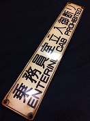 【停車中は使用しないで 下さい】 真鍮板浮文字 2.1×15.7×0.1p 若干反有/状態優 |
