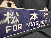 「木曽福島行○松/松本行○松」 白枠豚耳ホーロー紺板白彫文字 使用による傷汚錆有 状態使用痕共に極上 【純正品保証】(名古屋店) |