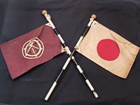 【部品】 「阪急旧社紋・日章旗小旗」 阪急 祝日などに客室妻面へ 掲揚されていた小旗 状態 良 |