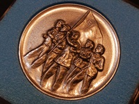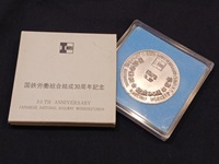 【記念メダル】 「国鉄労働組合 結成30周年記念」 1976年2月27日 ケース:9cm四方 組合旗を掲げる組合員モチーフ ケース小ヒビ/状態 優 |