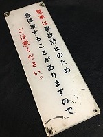 | 「電車は事故防止のため 急停車することがあります のでご注意ください。」 アクリル板製 サイズ/7x19.4cm 厚さ0.2cm 裏側塗装に若干剥れ有 状態優 |