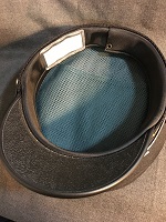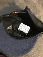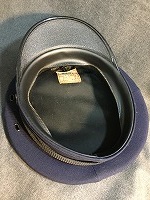「国鉄技術制帽」 色 紺グレー サイズ/2号形 頭囲/56cm 後部に調整用紐付 タグ・赤リボン付 未使用 |