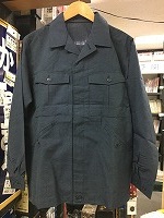 「国鉄技術盛夏上衣」 色 紺グレー サイズ/並1号 肩幅48/丈69/胸囲110㎝ 長袖・両胸にポケット付 タグ付・リボン無 未使用 |