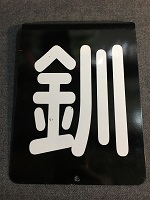 「2016 SL冬の湿原号/ 釧」 北海道旅客鉄道 黒色塗装板/ 白色印刷文字仕上 上部に持ち手用 折れ目有 下部に固定用穴1つ有 上部に塗料剥げ1㎝程度 1ヶ所有 状態優 |