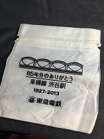 「85年のありがとう 東横線渋谷駅 巾着袋」 東急電鉄 サイズ/24/27㎝ 上部に紐付 SOLDOUT 「グリーン巾着袋」 東京都交通局協力会 サイズ/26/39㎝ 上部に紐付 SOLDOUT 何れも状態優 |