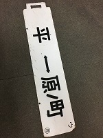 信号喚呼位置標」 京成電鉄 白色アクリル版製/ 黒色印刷縁どり仕上 サイズ/1辺24㎝ 三隅に固定用穴、計3つ有 裏面に固定用ステー付 使用による 汚れ有 状態優 |