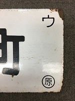 「平-原ノ町 ウ 〇原/ 無地」 白色/黒色彫文字 ホーロー板仕上 表面左側に手掛け穴有/ 下部に固定用穴 2つ有 使用による細かな傷、 錆等有 状態優 |