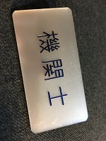 「機関士」 日本国有鉄道 白色アクリル板製/ 紺色彫文字仕上 裏面に安全ピン・ クリップ付 クリップに若干 がたつき有 状態優 |