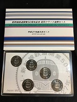 | 「新幹線鉄道開業50周年 記念百円クラッド貨幣セット」 平成27年銘5点セット 東北・上越・北陸・山陽・ 東海道 新幹線デザイン 裏面は全て0系新幹線 100円硬貨x5枚 直径2.2cm ケース入/箱入 未使用品 |