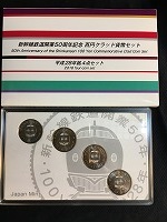 「新幹線鉄道開業50周年 記念百円クラッド貨幣セット」 平成28年銘4点セット 北海道・秋田・山形・九州 新幹線デザイン 裏面は全て0系新幹線 100円硬貨x4枚 直径2.2cm ケース入/箱入 未使用品 |