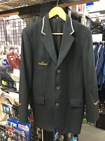 「JR東日本旧冬 運転士上衣」 色 ダークグレー サイズ/YA8 肩幅48/丈80/胸囲105㎝ 両胸・両腰部に ポケット付 右胸と両袖にワッペン付 状態優 |