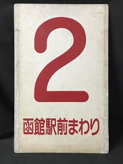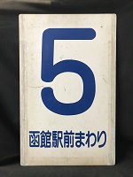 「2/5函館駅前まわり」 函館市電前頭板/合成樹脂板製 サイズ/34x54p厚さ0.3p 枠痕付/使用痕多数 状態優(神田駅前店) |