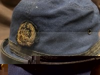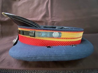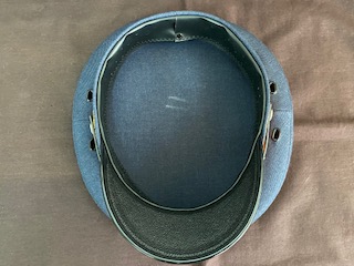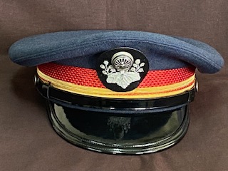 【SL機関士制帽】 号数/- 頭囲/53.5cm 後ろ調節紐有 1-3p調整可 昭和41年10月22日貸与 状態 良/記名消・使用汚・ つば折・すべり割有 |