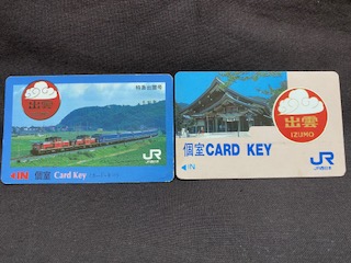 【カードキーセット】 「出雲」 2枚セット JR西日本 紙製 カードキー/状態 良/皺・裏汚有 個室カードキー/状態 優/若干汚有 |