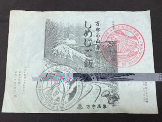 【駅弁掛け紙】 「万字の山菜しめじご飯」 製造年月日 昭和六十年三月31日3時 万字温泉 スタンプ付 B5サイズ 状態 良/焼・皺・折・汚有 ※画像にライン等が入ってますが 商品とは関係ありません |