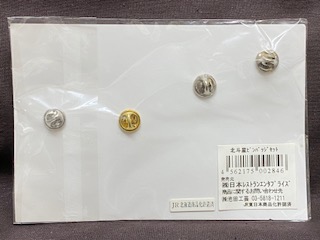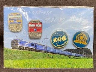 【ピンバッチセット】 「北斗星」 4個セット EF510-515/EF81-80 3×2.2cm ヘッドマーク グランシャリオエンブレム 直径3cm 車内販売品 (株)日本レストランエンタプライズ 状態 未開封 |