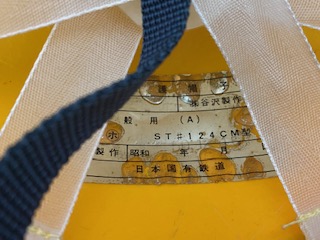 【腕章】 「機関士」 ビニール地/裏布張 7.7×42cm 紐・クリップ付 昭和44年10月 KK牧野商店製作 状態 良 焼汚有 |