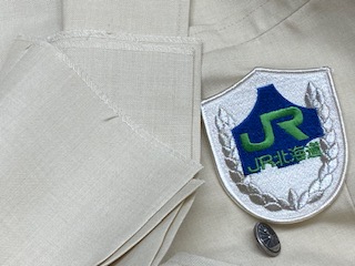 【JR北海道接客夏制服上下】 号数/- 肩幅/44cm 胸囲/106cm 着丈/71.2cm W/88.2cm 股下/83cm 夏用ワッペン付 仕付糸有/裾上げ無し 状態 未使用 ※画像2枚目/ズボン裾とワッペンです |
