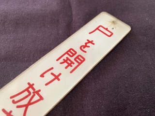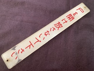 【車内プレート】 「戸を開け放さないで下さい」 アクリル製 堀文字 3×22×0.3cm 状態 優 使用による傷 ヒビ・塗装剥がれ有 |