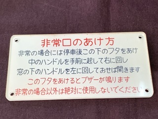 【車内プレート】 「非常口のあけ方」 アクリル製 堀文字 6.3×12.6×0.3cm 状態 優 使用による傷有 |