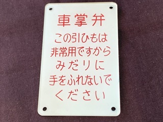 【車内プレート】 「車掌弁」 アクリル製 堀文字 6.3×9.9×0.2cm 状態 優 使用による傷有 |