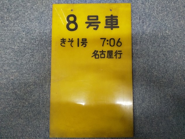 【乗車口板】 きそ1号 名古屋行 プラ板プリント字 35×21cm 擦、使用感良好 状態 優 |